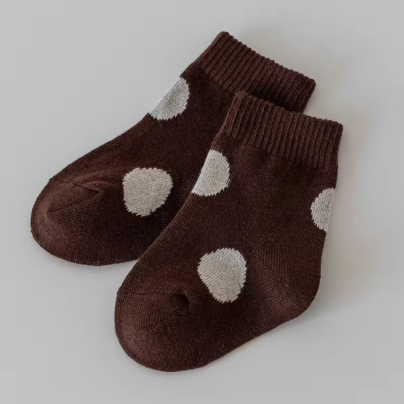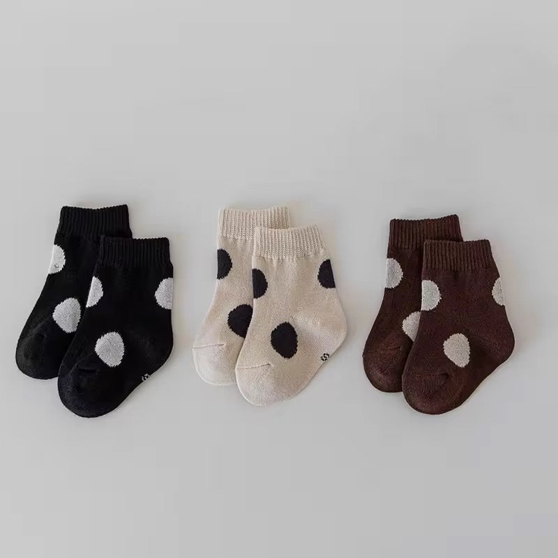 Soft cotton baby socks with a cute polka dot design. Gentle on baby’s skin and perfect for everyday wear.